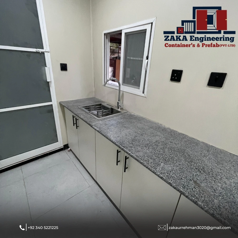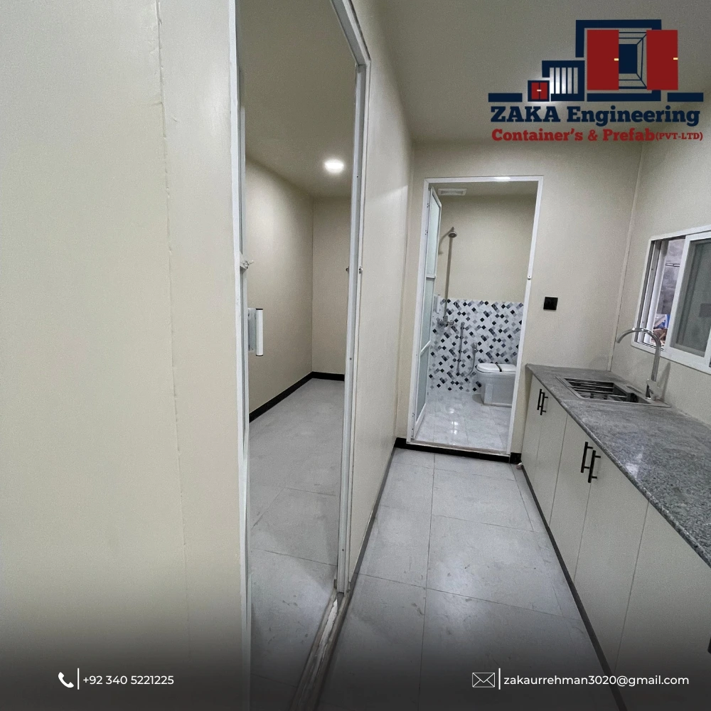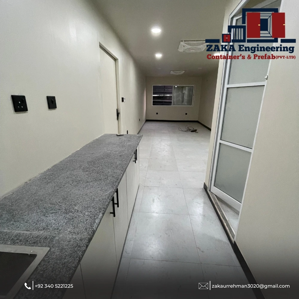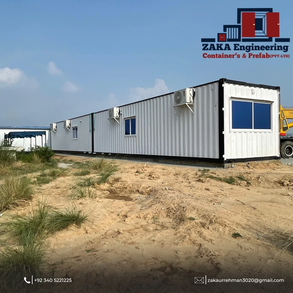 These initial images showcase the robust exterior of the call center, constructed using repurposed shipping containers—commonly transported via trucks for easy relocation. The container structure is designed for durability, mobility, and quick deployment. Its industrial aesthetic and steel-built frame offer strong resistance to environmental factors, making it an ideal solution for fast-paced commercial setups in diverse locations.